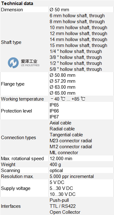 KUBLER编码器5020系列8.5020.0050.0512.S110.0100技术参数