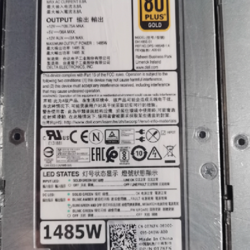 T7KFK DH1485E-S1 DPS-1485AB-1A 1485W SC7020 SC5020 SCv3020 DELL磁盘阵列柜冗余电源模块批发TEL:13910098771