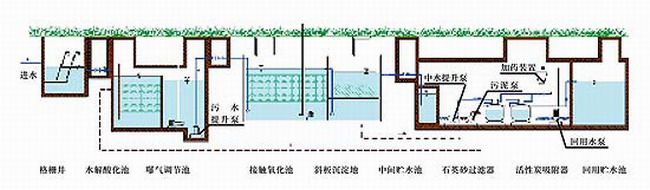 接触氧化工艺是国内公认的处理生活污水的成熟工艺,具有抗冲击能力强、高负荷、去除效率高等特点。整个工艺流程紧凑,占地面积小,出水水质好,操作简单,是理想的污水处理工艺。