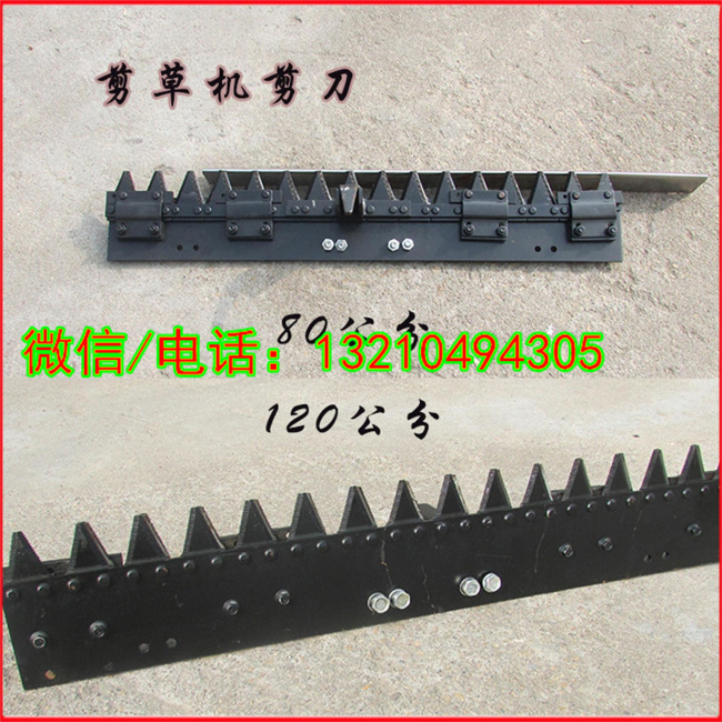 旋转式割草机刀盘上铰接的刀片,当刀盘高速旋转时,在离心力作用下保持其切割状态。当阻力过大或遇障时,刀片即回摆,避免损坏。刀片一边刃口磨损后可以换边使用。更换刀片也较往复式割草机方便。