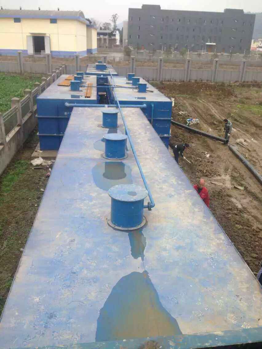 一体化生活污水处理设备共有六部分组成:初沉池,接触氧化池,二沉池,消毒池,消毒装置,污泥池,风机房组成,可在地上安装也可深埋地下。