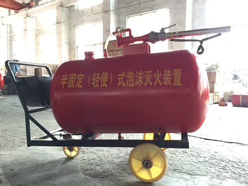移动式泡沫灭火装置,半固定式(轻便式)泡沫灭火装置,轻便式(半固定式)泡沫灭火装置。使用时将该设备的消防水带接口与供水源接口串接即可使用。半固定式(轻便式)泡沫灭火装置,轻便式(半固定式)泡沫灭火装置主要用於扑灭甲,乙、丙类非水溶性液体火灾及甲、乙、丙类液体装卸区及存放区易泄漏的场所。半固定式(轻便式)泡沫灭火装置,轻便式(半固定式)泡沫灭火装置该装置适用於市政住宅区、厂矿企业、油库、化工部门、热处理车间、加油站等场所,半固定式(轻便式)泡沫灭火装置,轻便式(半固定式)泡沫灭火装置供水源是供助於地下、地上消火栓、室内消火栓、机动供水泵及消防水罐车等配合使用。本产品具有价格便宜、操作使用及维修方便、喷射时间长、灭火性能高等特点,半固定式(轻便式)泡沫灭火装置,轻便式(半固定式)泡沫灭火装置是厂矿企业较理想的消防装备,同时又是城市专业消防队附设的消防补液点。该装置使用一般由两人操作,一人接消火栓带并打开消火栓闸阀供水;另一人接喷射枪水带并持枪喷射灭火。半固定式(轻便式)泡沫灭火装置,轻便式(半固定式)泡沫灭火装置工作原理及使用方法:将供水源接口与装置的进水接口相连接,并提供不低於0.20MPa的压力水,压力水流轻比例混合器低压型腔时,使低压型腔产生负压,即将装置内泡沫液吸出并自动按一定的比例混合,混合液经输送水带流向泡沫发射枪,混合液经泡沫发射枪喉管喷出时,再次与空气混合进行发泡,半固定式(轻便式)泡沫灭火装置,轻便式(半固定式)泡沫灭火装置最后泡沫混合液由枪口喷出进行灭火。 网址www.gyxfsb.com