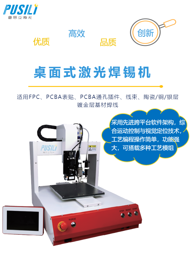 桌面式激光锡焊机采用先进跨平台软件架构,综合运动控制与视觉定位技术,工艺编程操作简单,功能强大,可搭载多种工艺模组:针筒阀、激光锡焊系统等,便于拓展,整体解决方案具有很高的性价比。