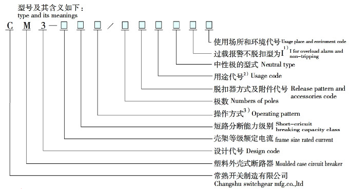 CM3系列塑料外壳式断路器以下简称断路器是本公司采用国际先进设计、制造技术研制、开发的新型断路器之一。其额定工作电压至690V、额定绝缘电压800V、额定冲击耐受电压达到8kV、额定电流10A~800A。CM3系列断路器适用于配电和电动机保护场合也适用于消防场合。断路器可具有过载报警不脱扣功能当线路过负荷时安装了带有此功能的断路器不跳闸仅输出过负荷信号保障供电连续性满足了GB50054第4.3.5条“突然断电比过负载造成的损失更大的线路其过负载保护应作用于信号而不应作用于切断电路”要求。断路器具有过载、短路、欠电压保护等功能能保护线路和电源设备不受损坏.
