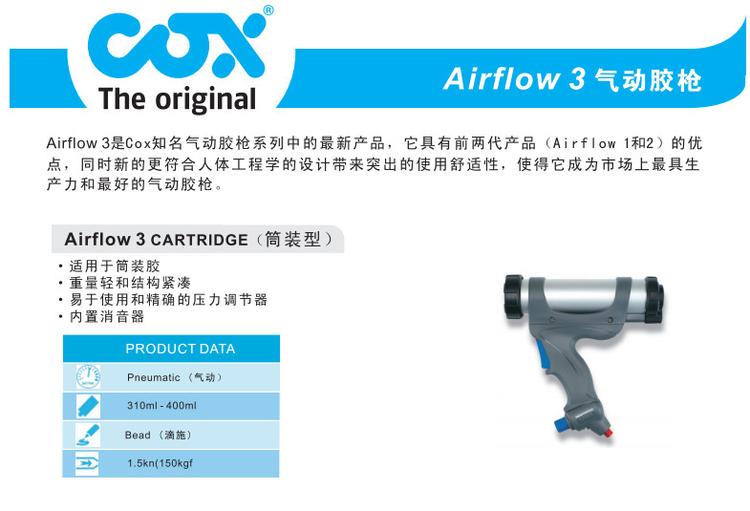 Cox 新一代Airflow 3单组份气动胶枪现已面世,给客户更好的选择。