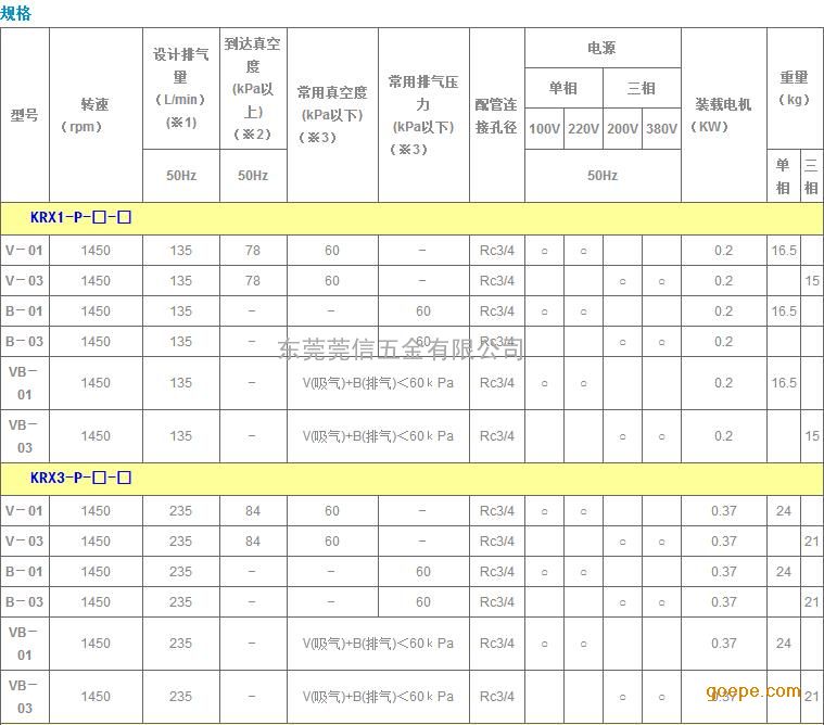 ※ KRX7A泵不能使用于60Hz区域、当在60Hz区域使用时请与代理商或厂家联系。
