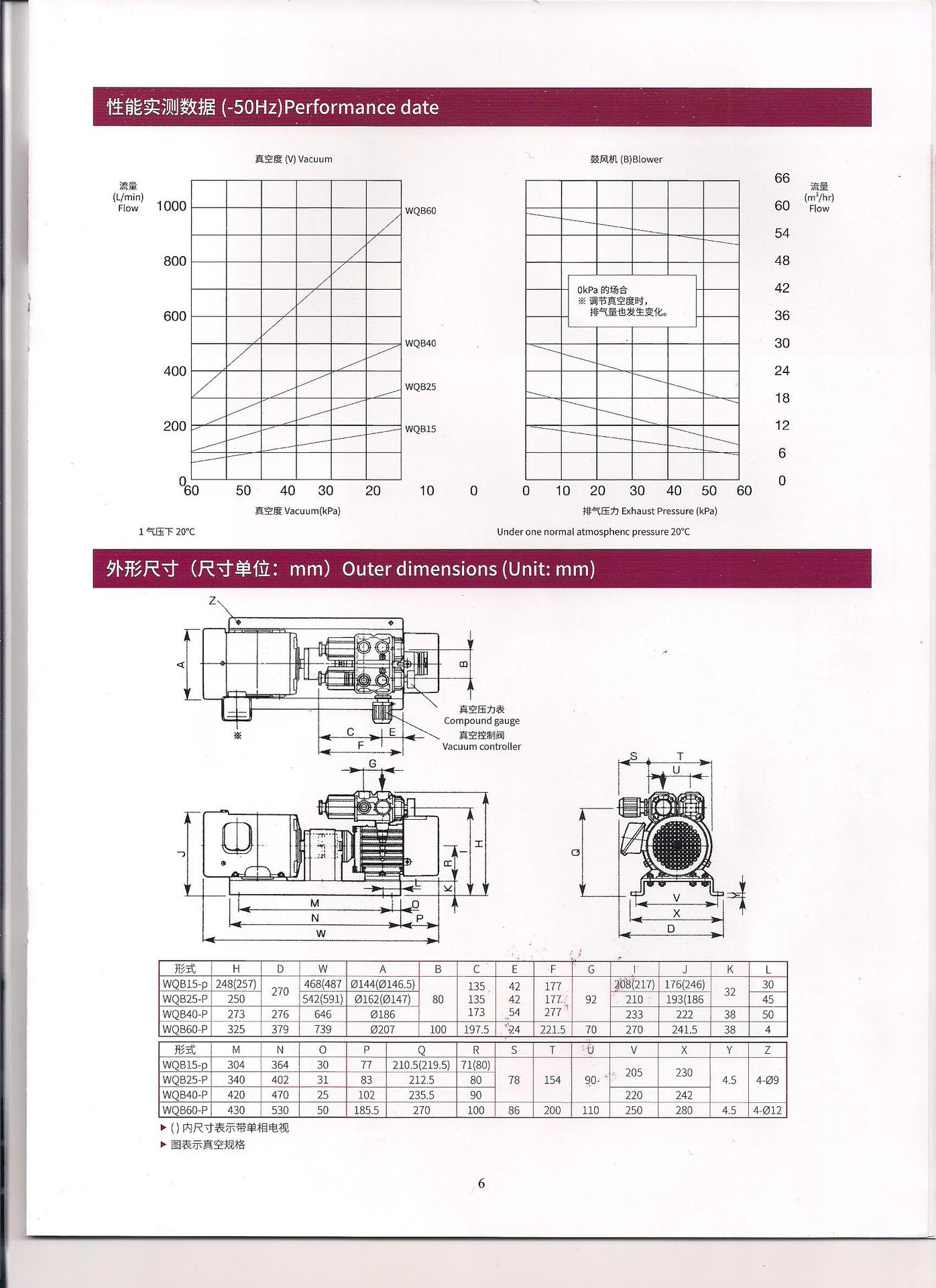 本公司标准型WQB系列无油式真空泵流量适用范围(235L/min---1190L/min)