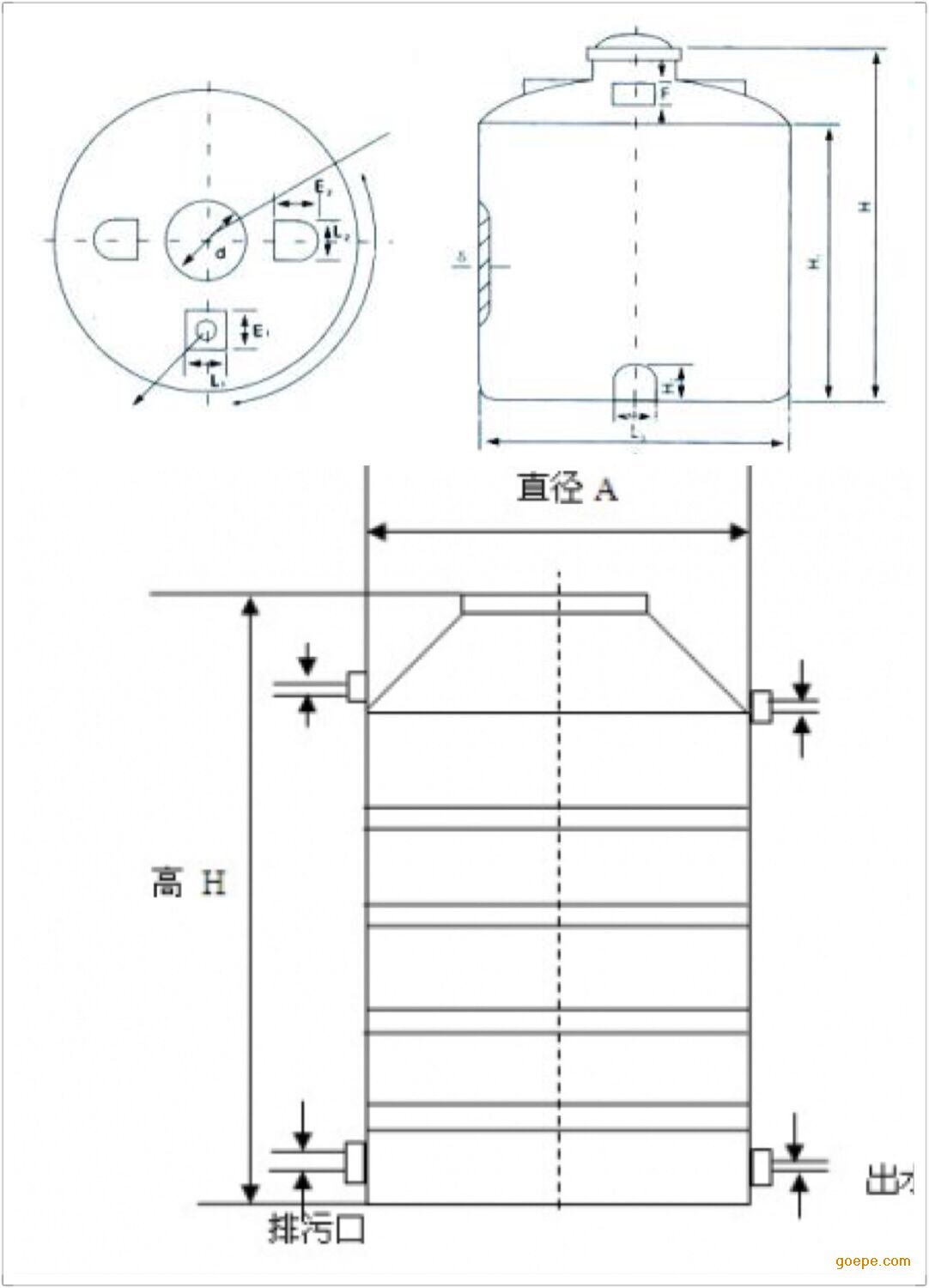 6塑料储罐产品加强筋加厚超耐用,圆柱形桶身有强肋线,符合高强度-重量比,优异的抗疲劳强度,