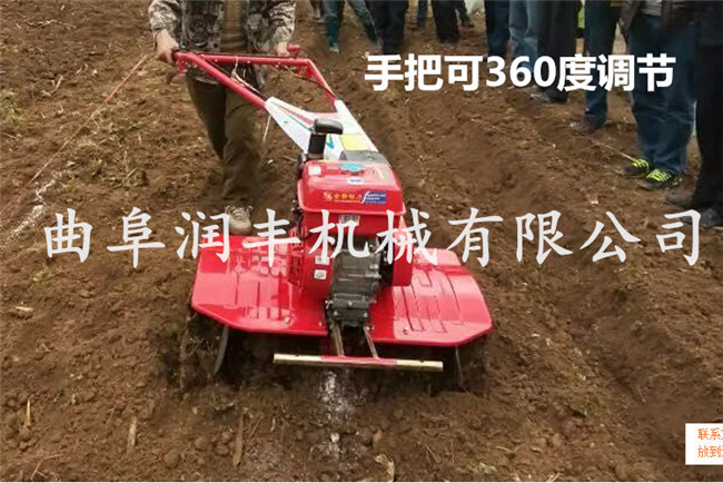 扶手左右360度上下30度可调,可配用几十种农机具:开沟、培土、起垄、打埂、覆膜、喷药、浇灌等。