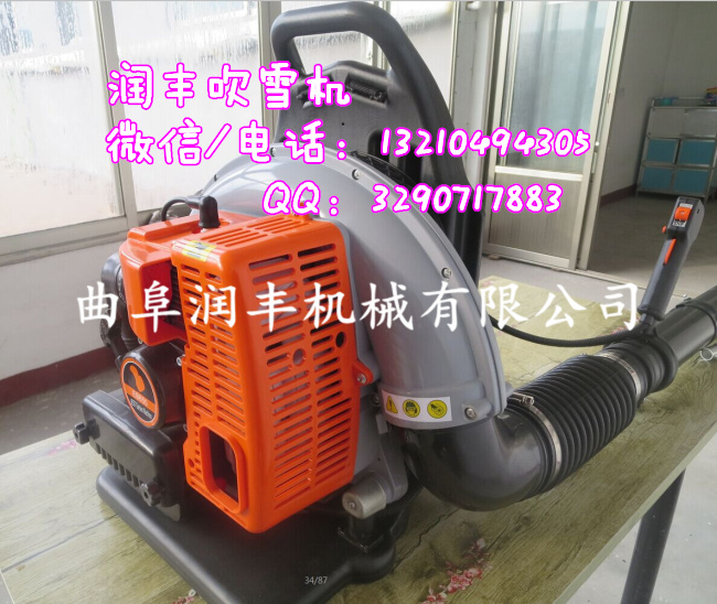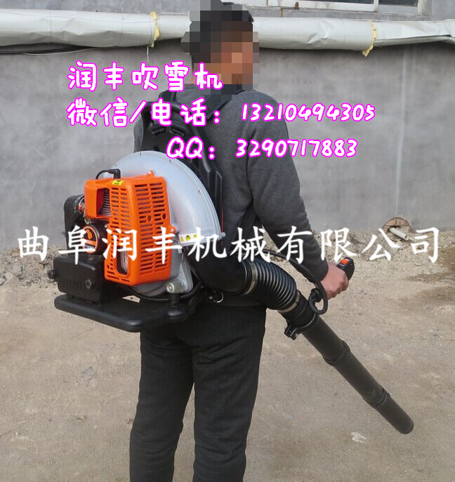 作用:公路清扫落叶.冬季吹雪。本实用新型公开了一种风冷吹雪机。包括有发动机、传动装置、高压离心通风机和与高压离心通风机出口相连的风筒,发动机通过传动装置与高压离心通风机相连。解决了道牙子、隔离带等清雪死角的难题。据了解,以往清除道牙子、隔离带死角积雪全靠人力扫帚和铁锹抠雪,作业效率很低。该局环卫工人利用吹雪设备,强力吹雪,可以迅速吹净死角的积雪,提高效率20倍。