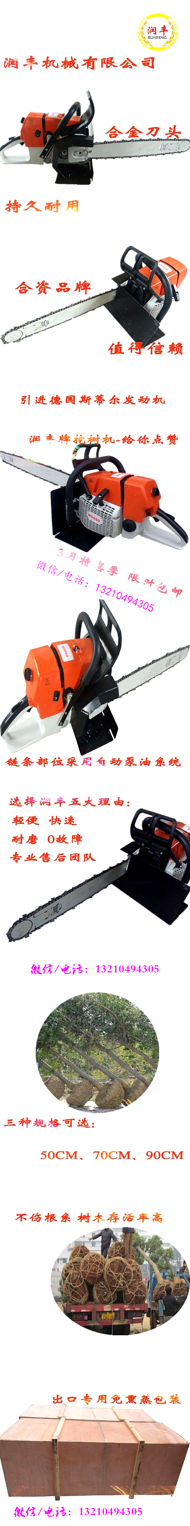4、本机可以在各种恶劣环境下随意切割,操作简便,作业范围广,30公分以下的苗木都可随意轻松断根取苗,单人操作只需2-3分钟,切割深度450-900mm,直径更大,可最大程度保留苗木的根系及锅形土球,不伤根系以及提高苗木的成活率。