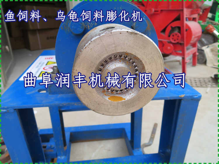 四.第次做完料后,把前段切料部分拆开,用工具勾立刻拆开膨化机头上的螺母,再起动电机把机内多佘饲料流出来,清理螺母孔板