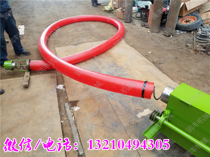 答:是螺旋式的,软管里面有软螺旋,高速旋转把粮食提上来。管是软的不会对粮食造成损伤。