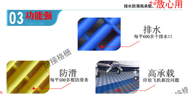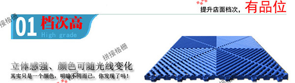 我公司产销的拼接格栅不仅质地轻盈,拼接、移动方便,还能有效起到防滑、防湿以及美观的作用。