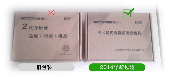 1、外包装名称由"2代身份证验证(阅读)机具"改为"台式居民身份证阅读机具"
