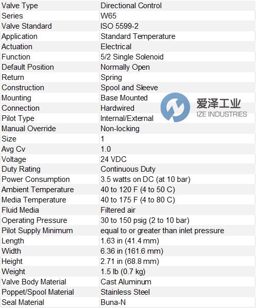 ROSS阀W65系列W6576A2401W技术参数及介绍