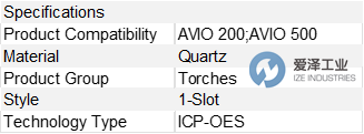 这款1槽石英炬是 Avio™ 200 和 500 ICP-OES 系列仪器使用的标准炬。