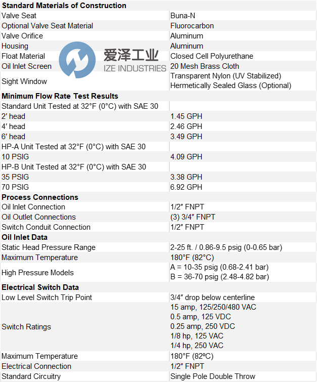 KENCO油位控制器旨在维持固定式发动机、压缩机和机械润滑器箱曲轴箱内的运行油位。KENCO油位控制器与顶部供油系统配合工作,该系统为油位控制器供油。随着机油的消耗,油位控制器会提供所需的机油量,以维持曲轴箱内适当的油位。油位控制器使用浮球控制阀来维持曲轴箱内的油量。该阀门根据曲轴箱内机油的需求量自动开启和关闭,从而保持恒定的油位。KLCE中的油位开关是一个安装在防爆外壳内的电气开关,适用于危险的氢气环境。浮球开关监测曲轴箱内的机油。曲轴箱内的油位与油位控制器壳体内的油位直接对应。如果曲轴箱内的油位下降超过中心线3/4英寸,开关将触发并发出警报。