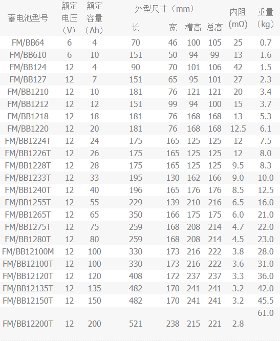 鸿贝蓄电池FM(6V/12V)系列产品特性
