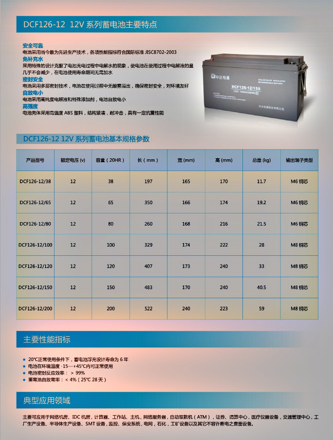 ◎大型UPS和计算机备用电源 ◎消防系统和安全系统不间断电源
