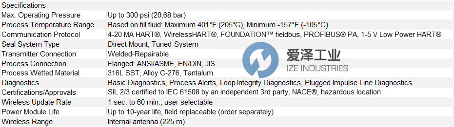 如果有任何关于ROSEMOUNT液位变送器3051L4AH0KD11AAM5D4HR5的疑问,请随时致电我们,爱泽工业(021-31006702)。我们将尽全力解决您的问题。