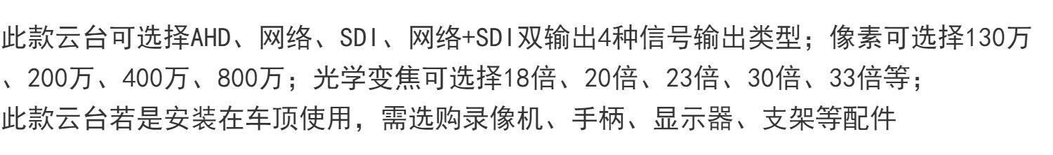 | 安装方式 | 吸顶云台 | 安装环境 | 车顶 |