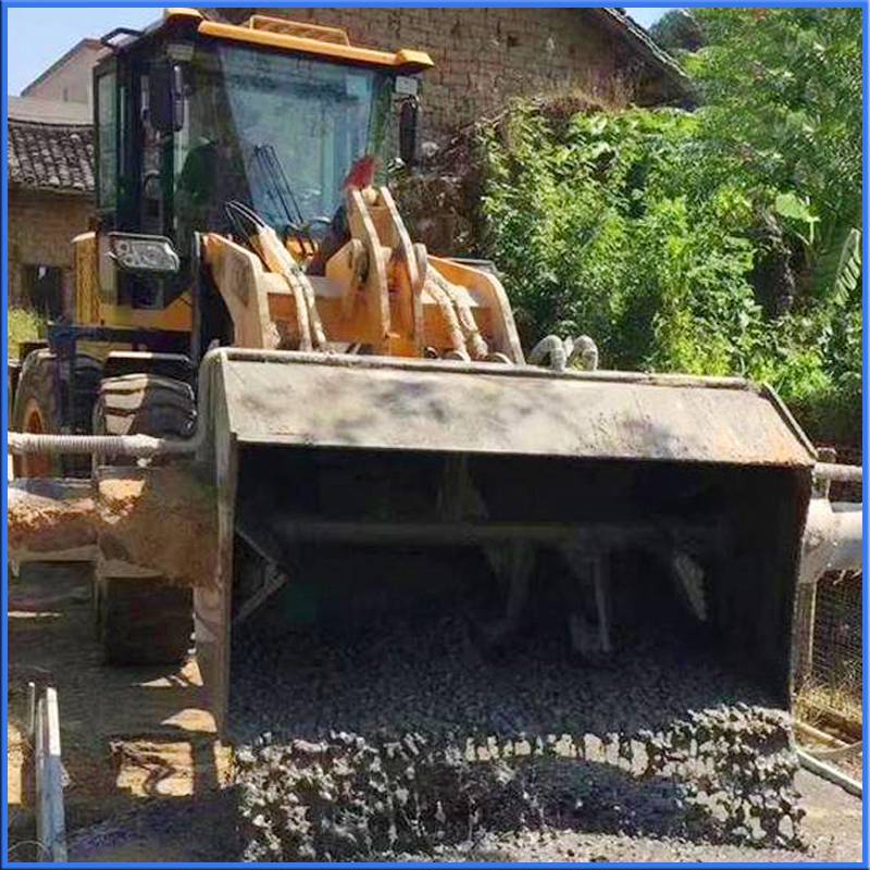 二是利用一台装载机把铲斗部位拆除,安装上铲斗式搅拌缸及其配套系统就是一台装载机铲斗式混凝土搅拌机,实现自行上料、拌合、 转场、卸料功能。